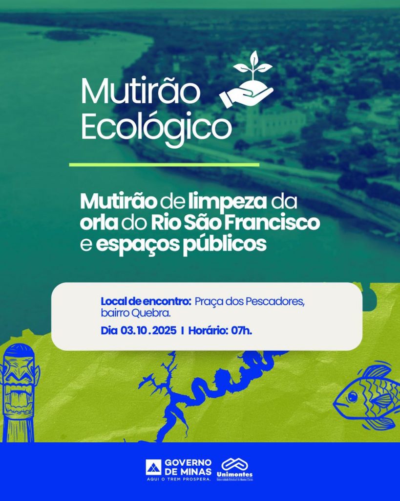 O campus da Universidade Estadual de Montes Claros (Unimontes) em São Francisco, Norte de Minas, organizará, na próxima sexta-feira (03/10), um Mutirão de Limpeza da orla do Rio São Francisco e de espaços públicos. O evento, que pretende reunir a população local, entre escolas estaduais, pescadores, igrejas, comerciantes, polícia ambiental e políticos, vai ocorrer a partir das 7h, na Praça dos Pescadores, bairro Quebra. A iniciativa faz parte das comemorações pelos 524 anos do Velho Chico.
