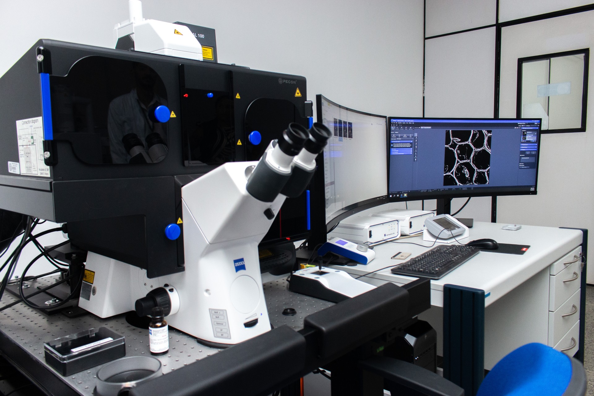 O Laboratório de Microscopia Avançada, situado no Hospital Universitário Clemente de Faria, ocupa um andar inteiro no Instituto de Pesquisa em Saúde (tamanho). Dispõe de uma sala dedicada a aquisição e análise de imagens obtidas por microscopia eletrônica de transmissão e de varredura, bem como por microscopia de fluorescência confocal e de super-resolução. A temperatura na sala é controlada e mantida em níveis adequados para garantir o bom funcionamento dos equipamentos.